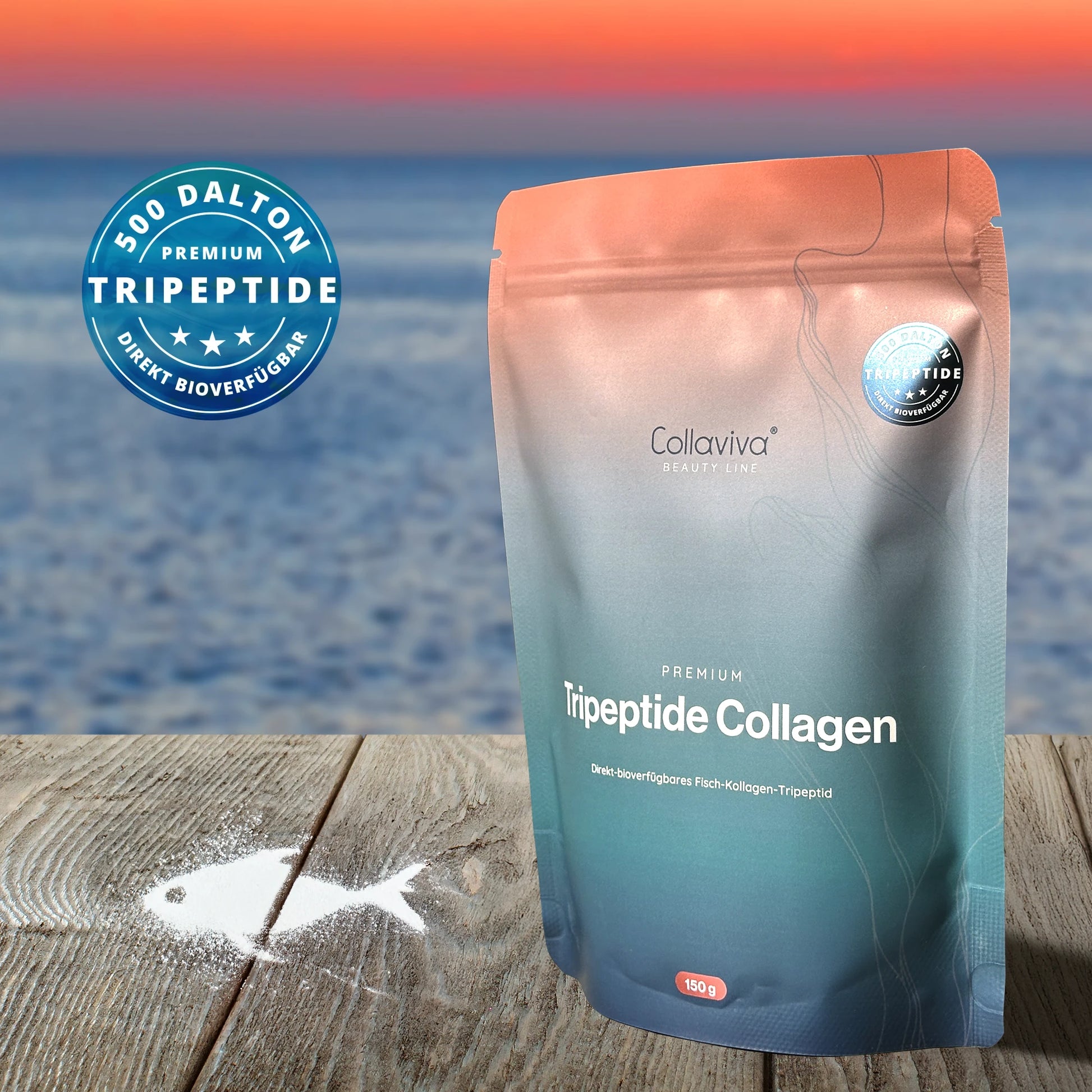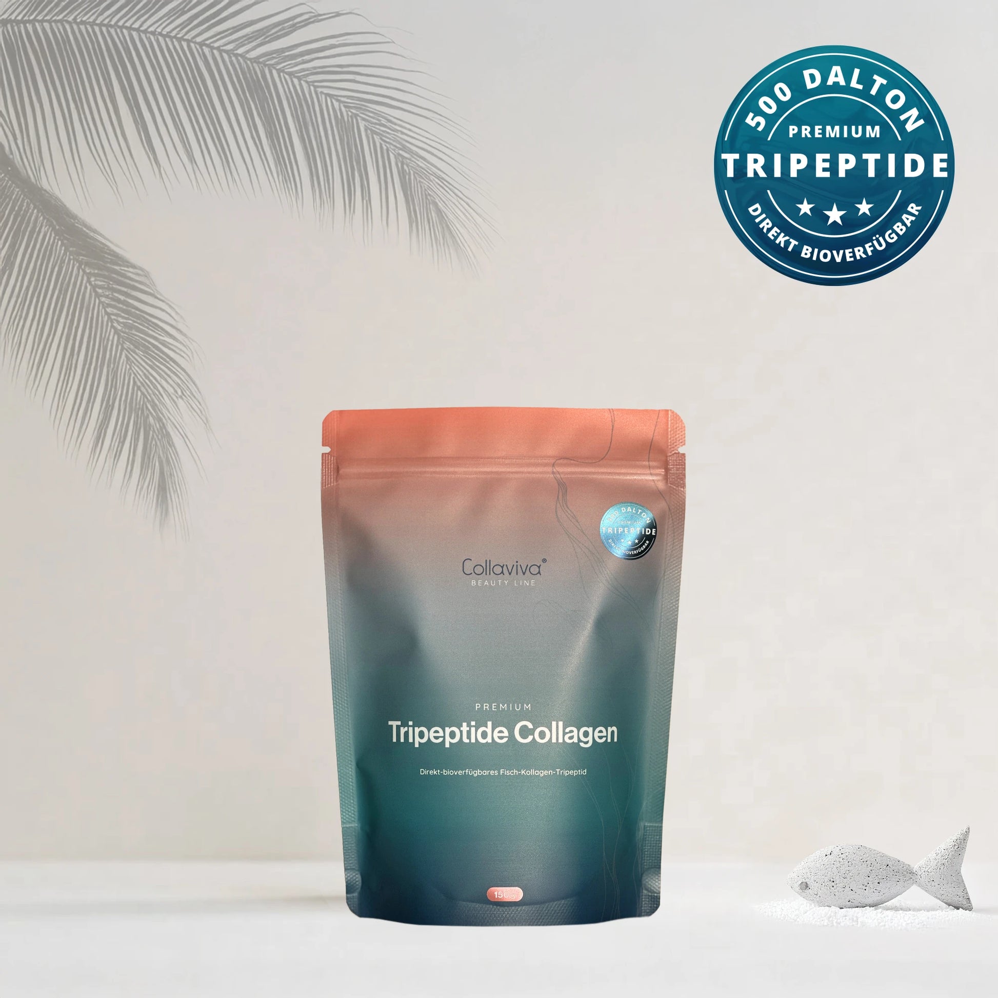 Unser Tripeptide Collagen ist die neue Generation bioaktiver Kollagenpeptide – gewonnen aus nachhaltig zertifiziertem Fisch (FOS & BAP). Dank seiner außergewöhnlich geringen Molekülgröße von nur 500 Dalton ist es deutlich effizienter als herkömmliches Kollagenhydrolysat (meist 2.000–4.000 Dalton oder mehr).